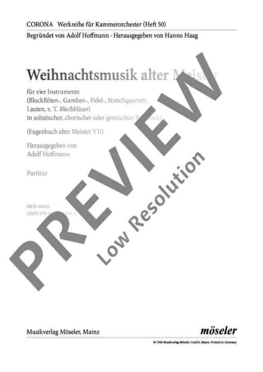 Digital Sheet Music for Christmas music of old masters - Score by scored for 4 Instruments (Recorders-, Gamben-, Fiddle-, String Quartet, Lutes, Z.T. Brass Instruments); id:493036