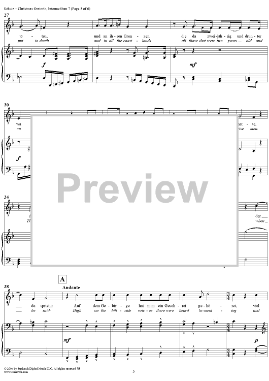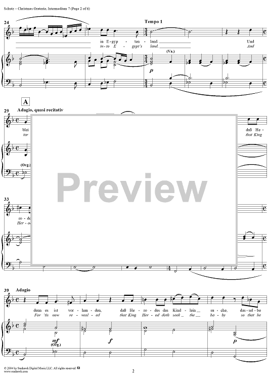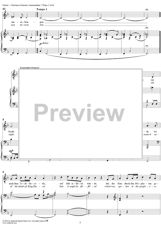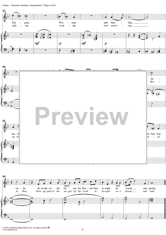 Digital Sheet Music for Christmas Oratorio: Intermedium VII - Der Engel (Sopran) "Stehe auf, Joseph" by Heinrich Schütz scored for Four-part Mixed Chorus/Piano; id:304594