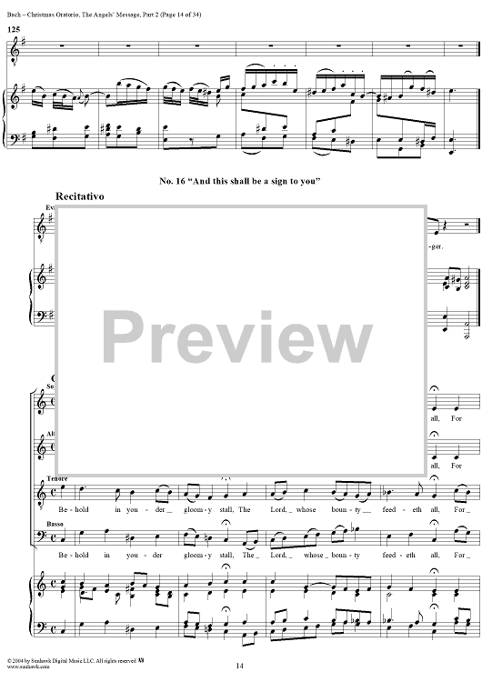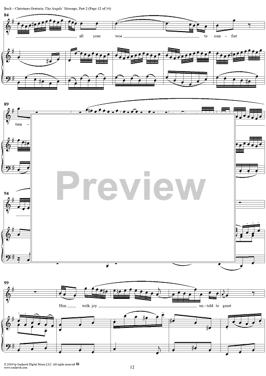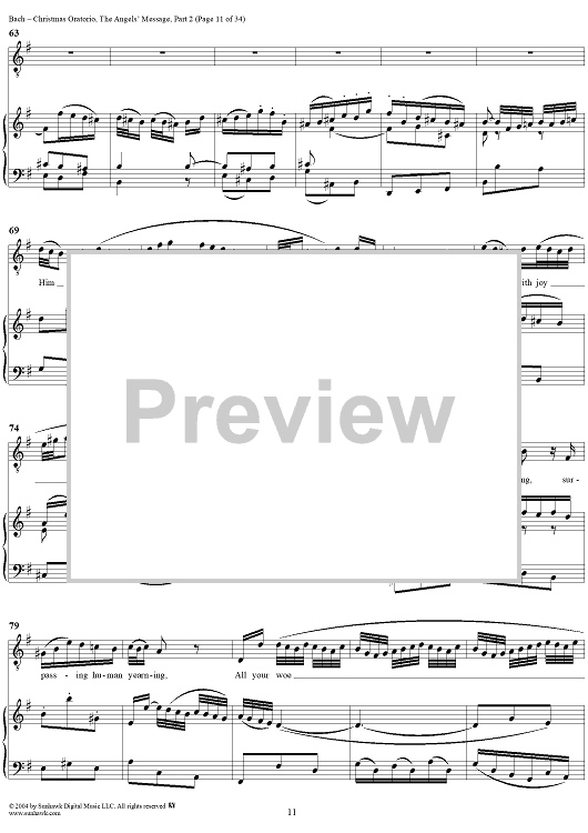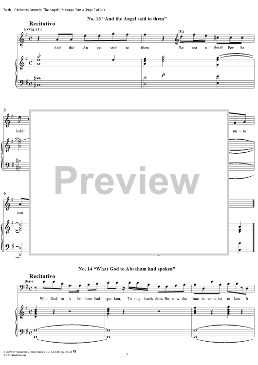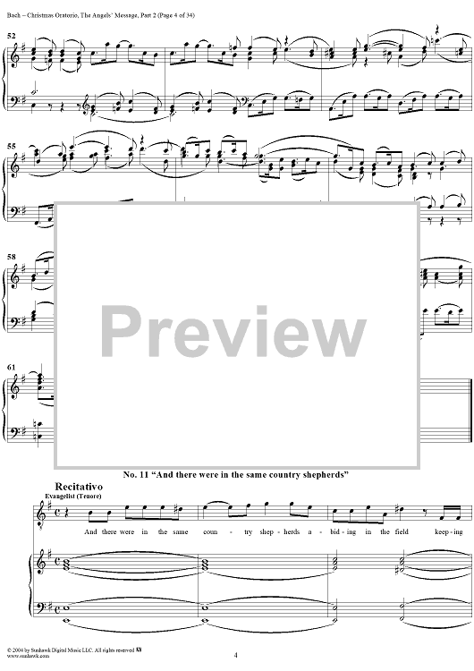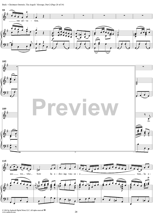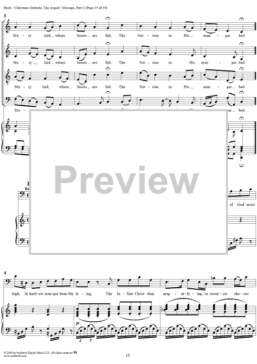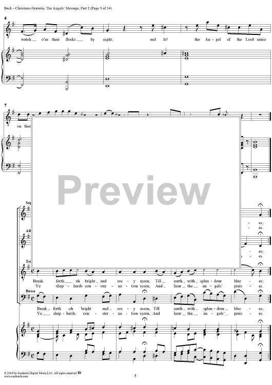 Digital Sheet Music for Christmas Oratorio: Part II, The Angels' Message by Johann Sebastian Bach scored for Soli/SATB/Piano; id:304809