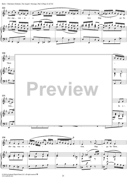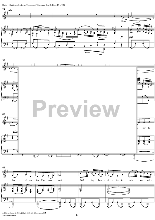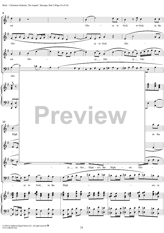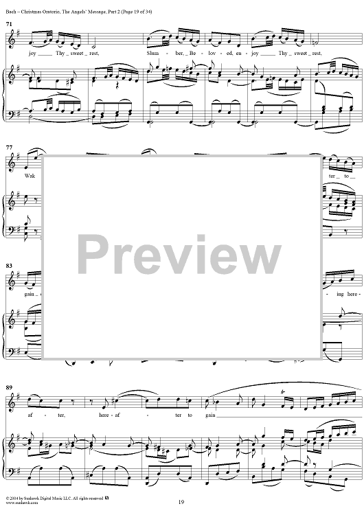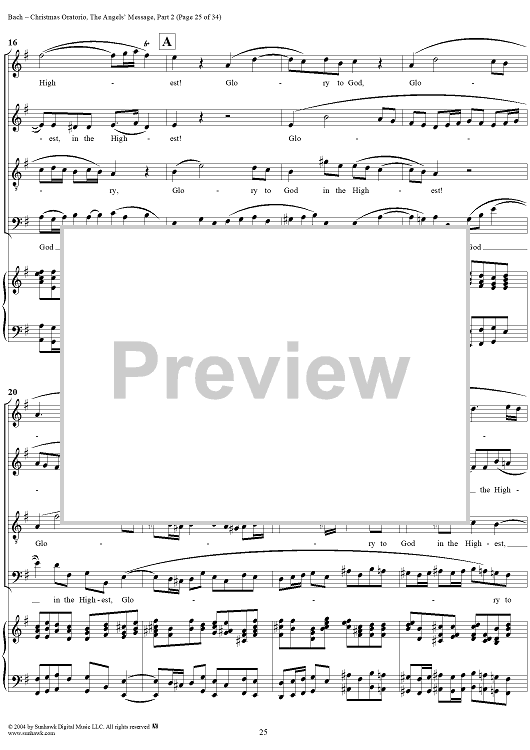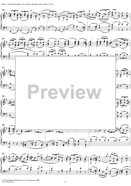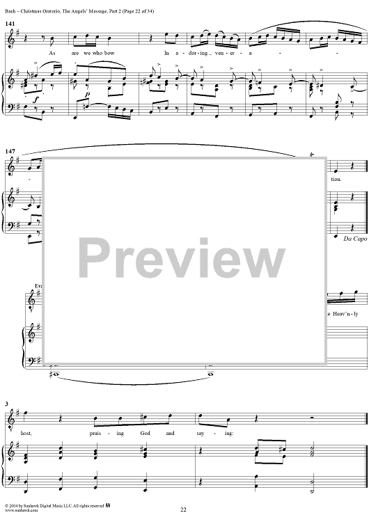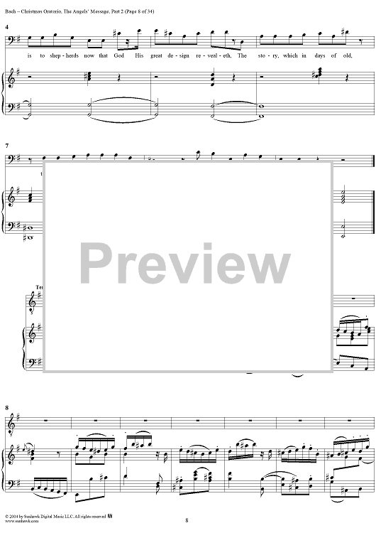 Digital Sheet Music for Christmas Oratorio: Part II, The Angels' Message by Johann Sebastian Bach scored for Soli/SATB/Piano; id:304809