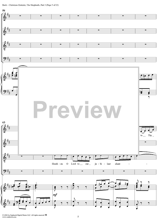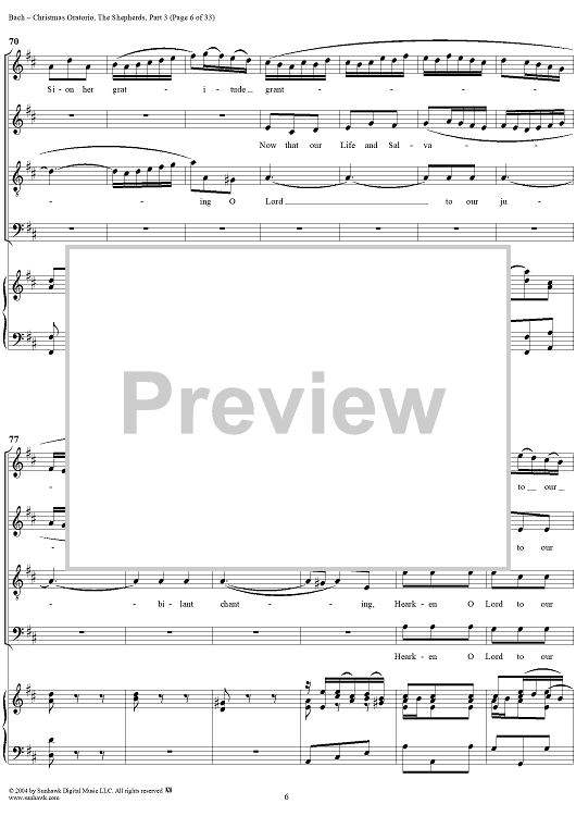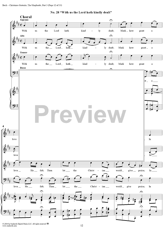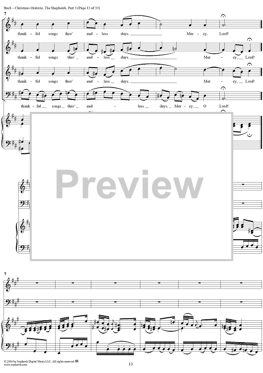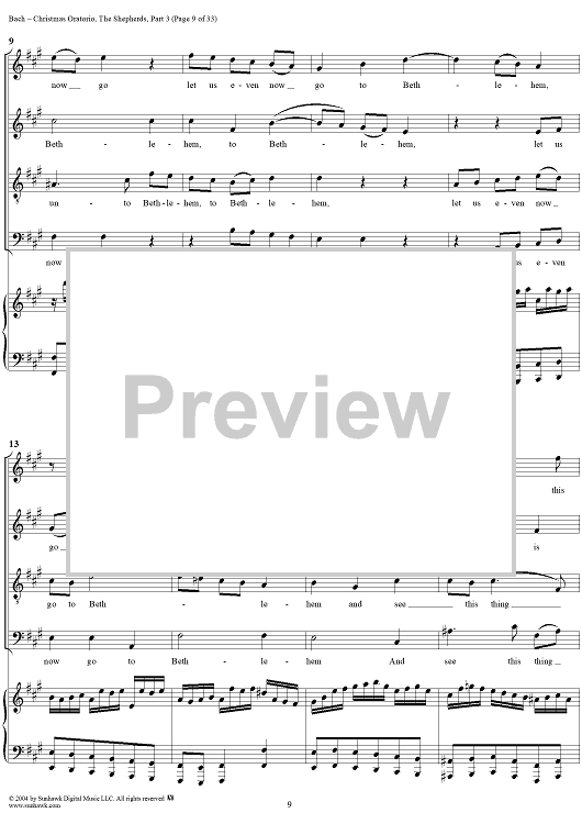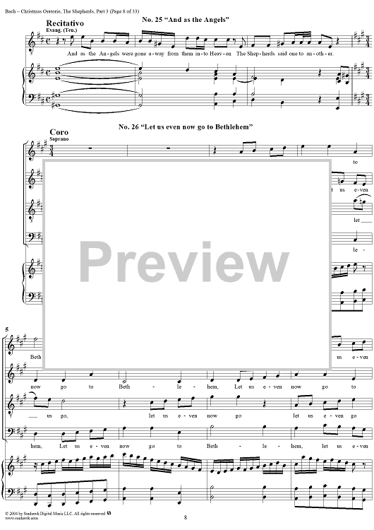 Digital Sheet Music for Christmas Oratorio: Part III, The Shepherds by Johann Sebastian Bach scored for Soli/SATB/Piano; id:304810