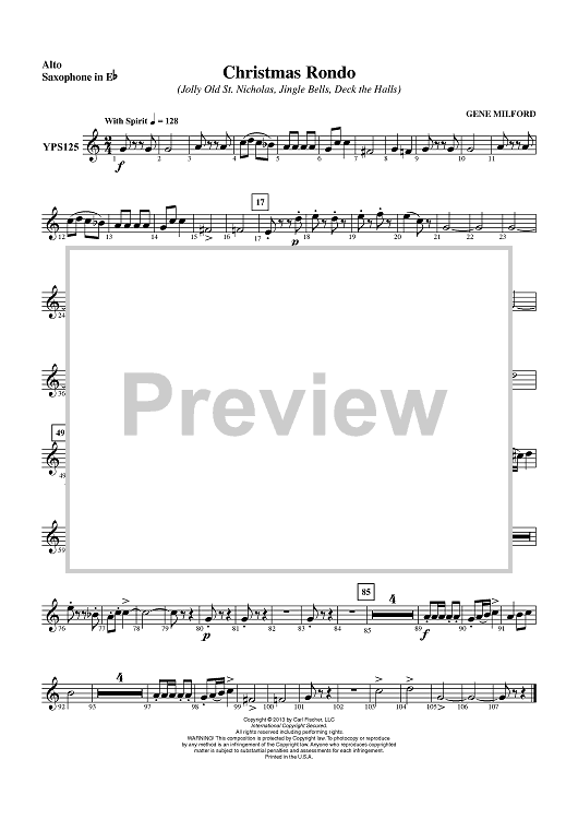 "Christmas Rondo - Alto Sax" Sheet Music by Gene Milford