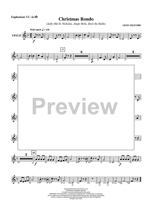 "Christmas Rondo - Euphonium TC in Bb" Sheet Music by Gene Milford