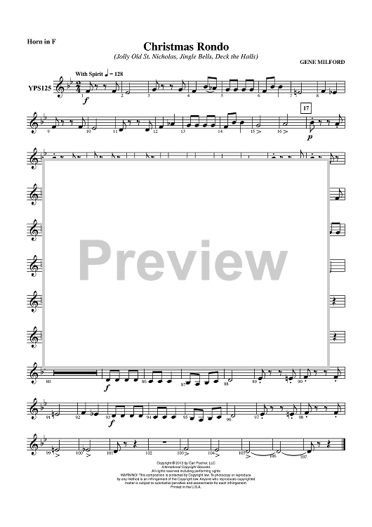 "Christmas Rondo - Horn in F" Sheet Music by Gene Milford