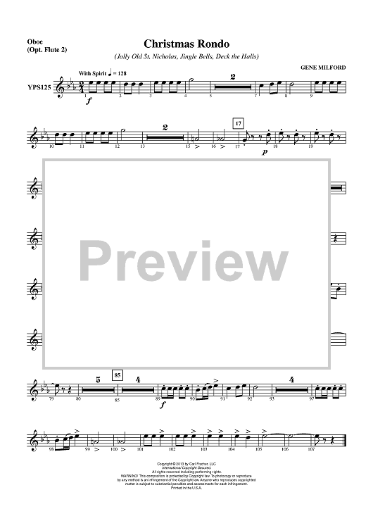 Digital Sheet Music for Christmas Rondo - Oboe (Opt. Flute 2) by Gene Milford scored for Concert Band; id:436378