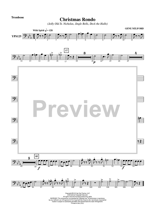 Digital Sheet Music for Christmas Rondo - Trombone by Gene Milford scored for Concert Band; id:436389