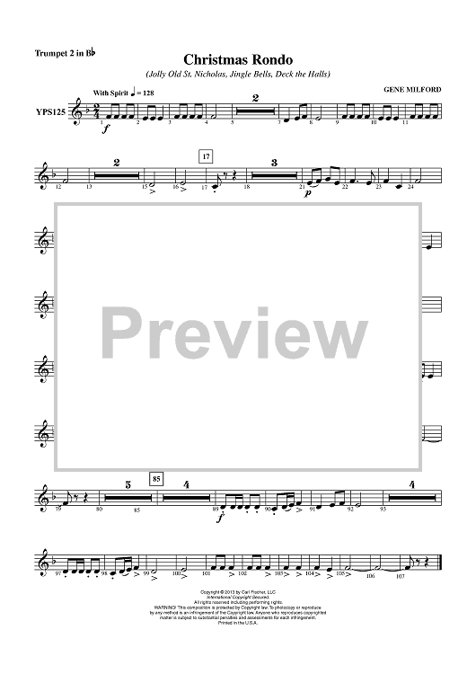 "Christmas Rondo - Trumpet 2 in Bb" Sheet Music by Gene Milford