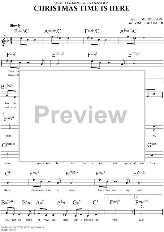 Digital Sheet Music for Christmas Time Is Here by Vince Guaraldi, Lee Mendelson scored for Lead Sheet; id:118725