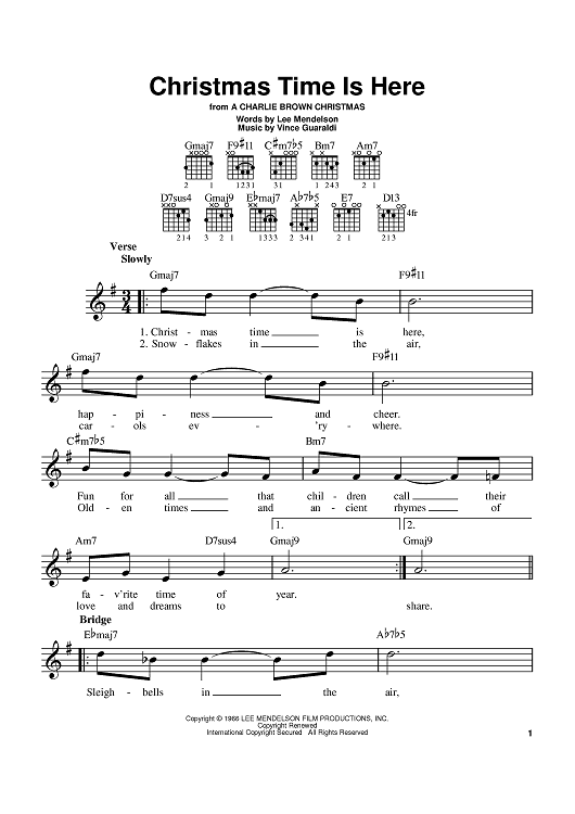 Digital Sheet Music for Christmas Time Is Here by Vince Guaraldi, Lee Mendelson scored for Easy Guitar; id:384716