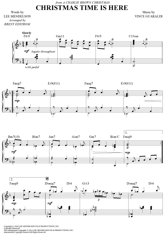 Digital Sheet Music for Christmas Time Is Here by Vince Guaraldi, Lee Mendelson, Brent Edstrom scored for Piano Solo; id:461921