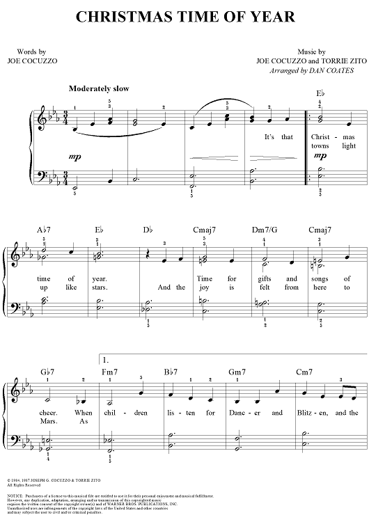 Digital Sheet Music for Christmas Time of Year by Dan Coates, Joe Cocuzzo, Torrie Zito scored for Easy Piano/Vocal; id:284010