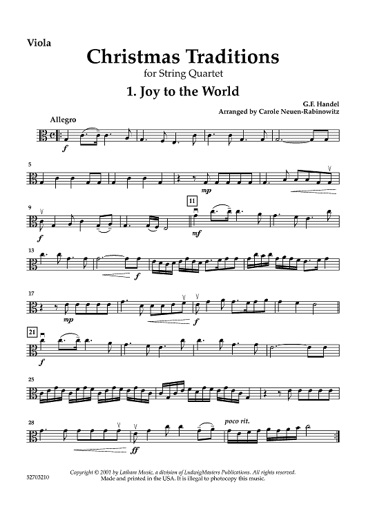 Digital Sheet Music for Christmas Traditions - Viola by Various, Carole Neuen-Rabinowitz scored for String Quartet; id:461041