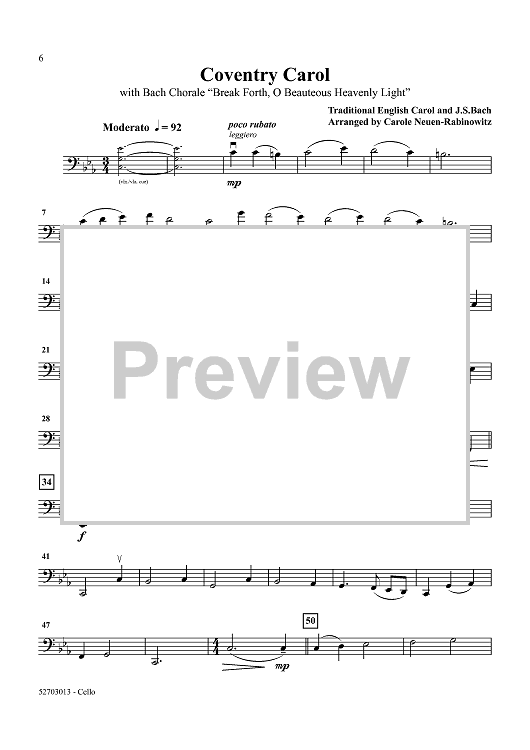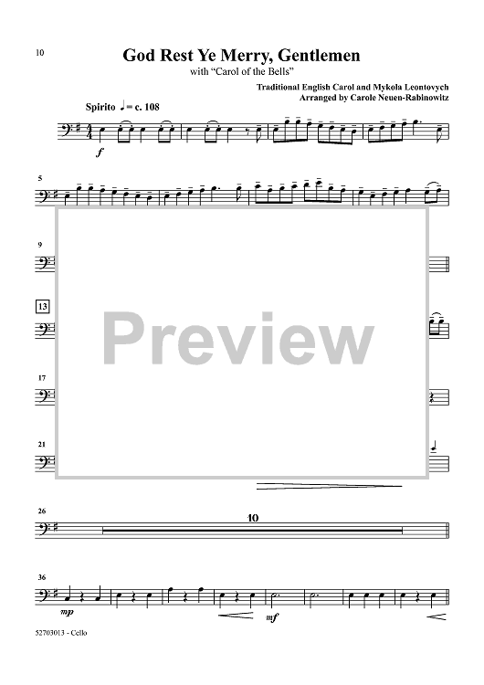 Digital Sheet Music for Christmas Traditions: Volume 2 - Cello by Traditional, Carole Neuen-Rabinowitz scored for String Quartet; id:458194
