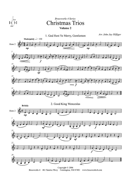 Digital Sheet Music for Christmas Trios, Volume 2 - Horn 2 by John Jay Hilfiger scored for Horn Trio; id:358025