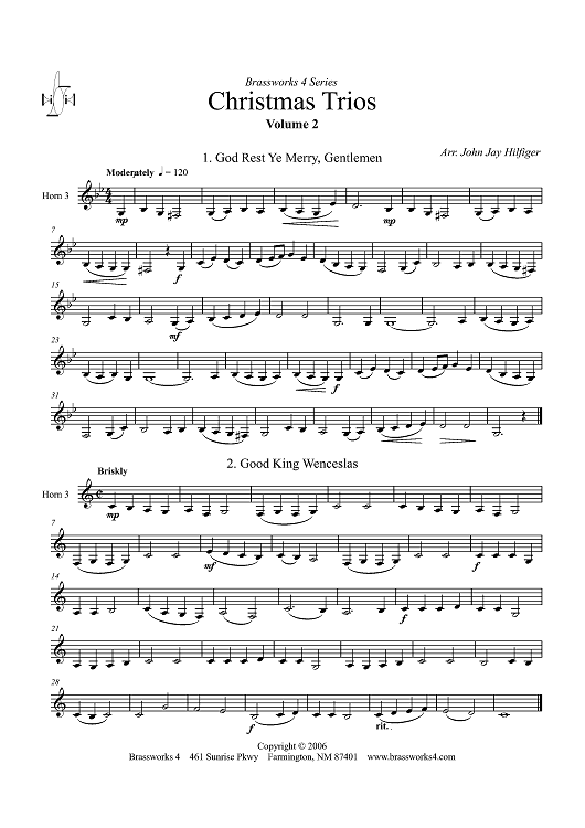 Digital Sheet Music for Christmas Trios, Volume 2 - Horn 3 by John Jay Hilfiger scored for Horn Trio; id:358026