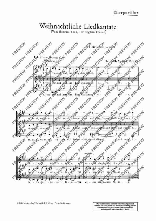 "Christmassy song cantata - Choral Score" Sheet Music by Heinrich Spitta