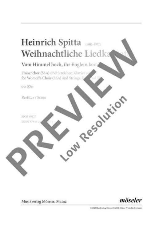 Digital Sheet Music for Christmassy song cantata - Score by Heinrich Spitta scored for Female Choir (ssa) And Strings; Piano Ad Libitum; id:494119