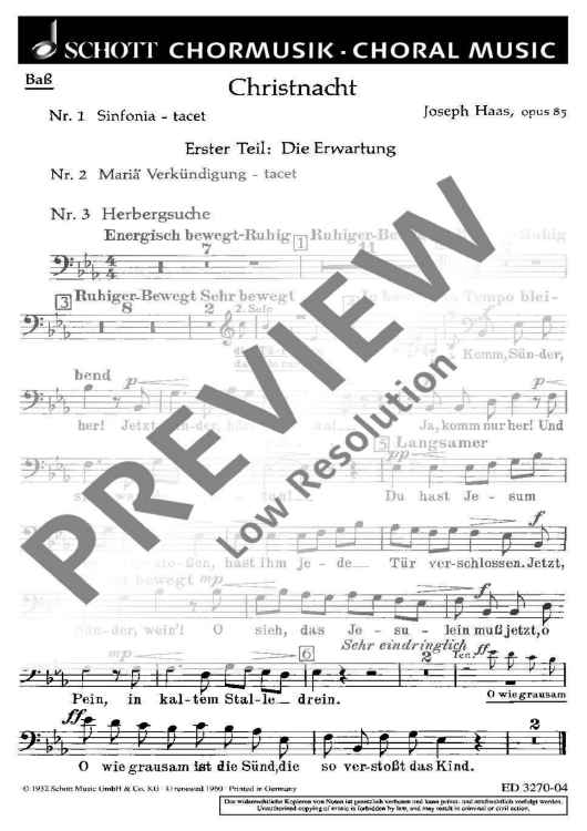 "Christnacht - Bass" Sheet Music by Joseph Haas