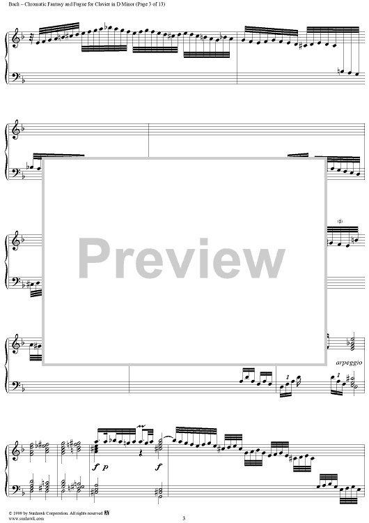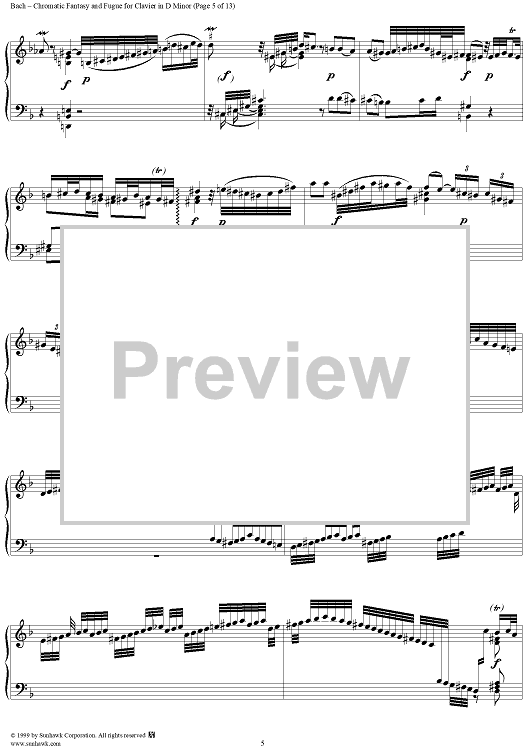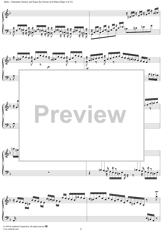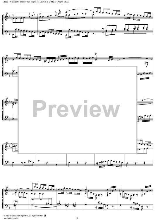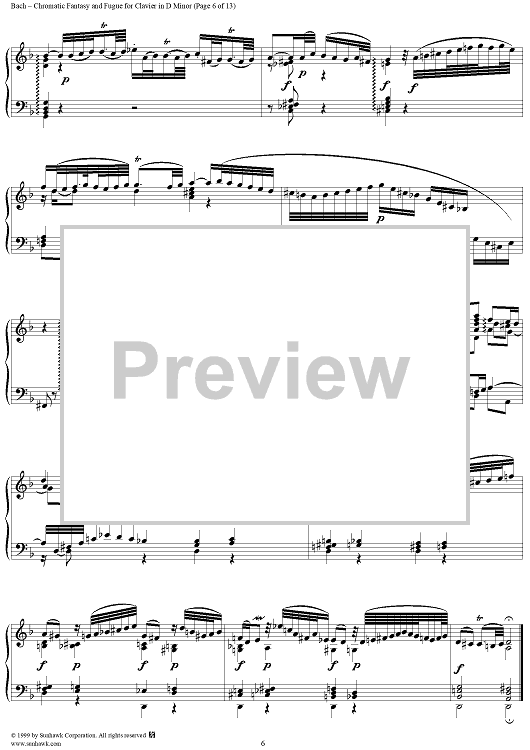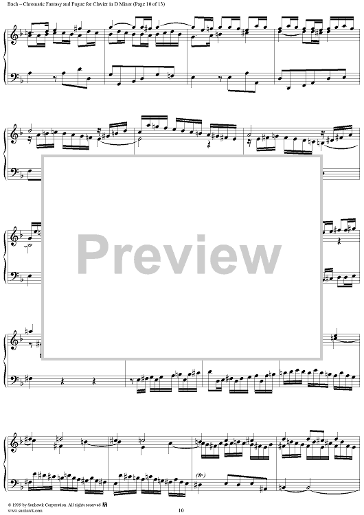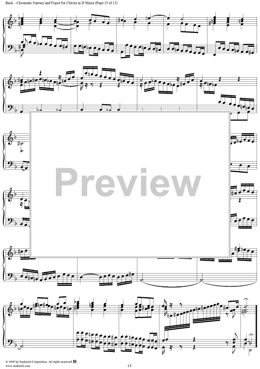 Digital Sheet Music for Chromatic Fantasy and Fugue in D Minor BWV903 by Johann Sebastian Bach scored for Piano Solo; id:236416