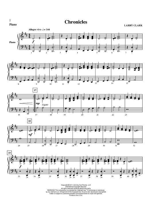 "Chronicles - Piano" Sheet Music by Larry Clark