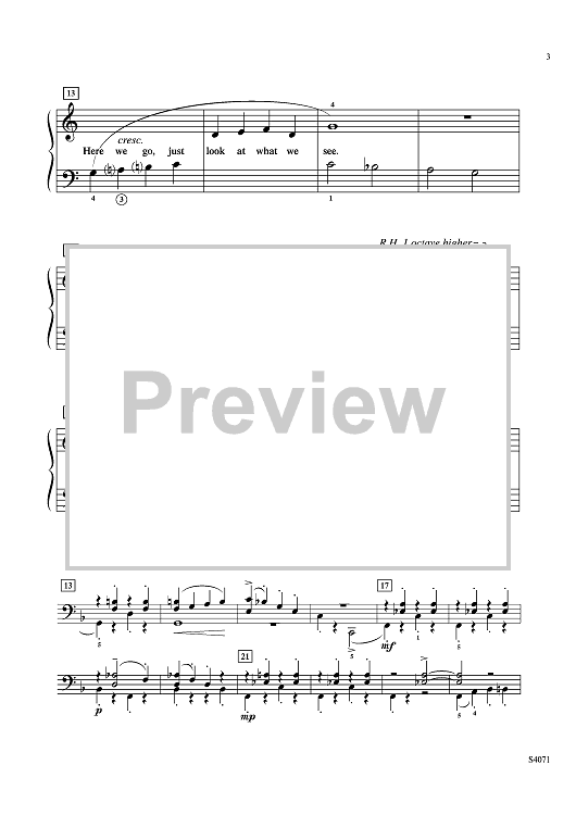 Jazzy, upbeat elementary solo describes a train ride complete with train effects, lyrics and an optional teacher duet. Played in Middle C position, this composition reinforces reading of basic intervals (seconds and thirds), and practice with accidentals. All aboard for a great musical ride!