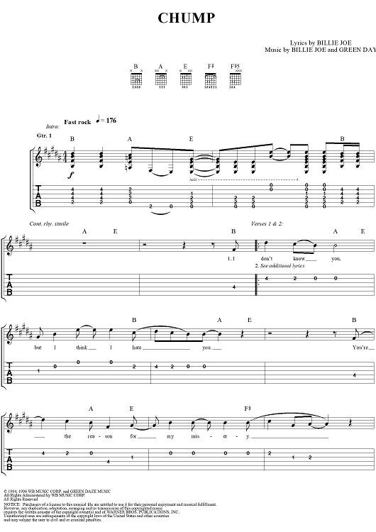 Digital Sheet Music for Chump by Green Day, Billie Joe scored for Easy Guitar/Vocal; id:267464