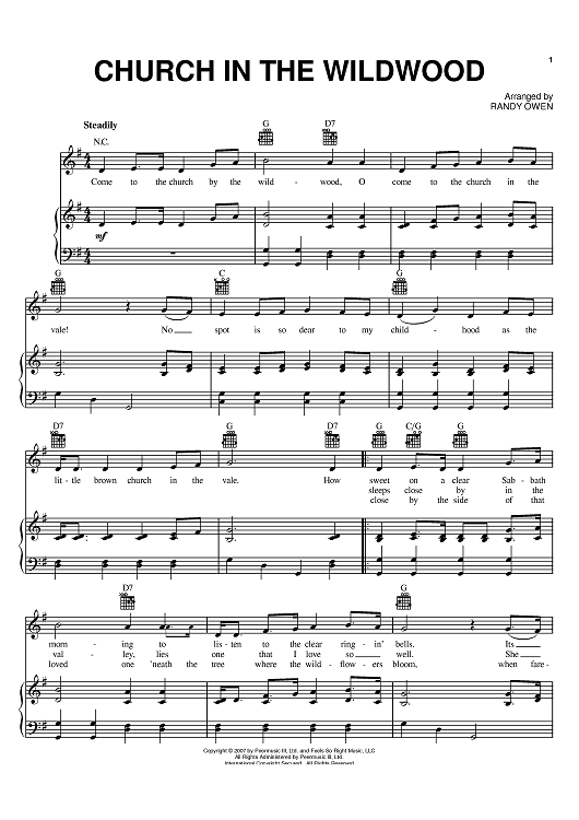 Digital Sheet Music for Church In The Wildwood by Randy Owen, Alabama scored for Piano/Vocal/Chords; id:401527