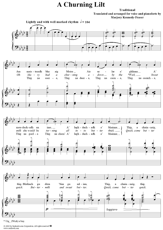 "Churning Lilt, Thig, a chuinneig, thig!" Sheet Music by Traditional
