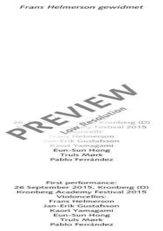Penderecki dedicated the last composed part of Polish Requiem to his contemporary Pope John Paul II. After several arrangements, the version for six violoncellos premiered in 2015 is now published as score and parts.