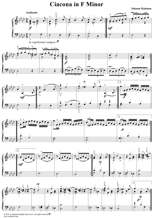 Digital Sheet Music for Ciacona in F Minor by Johann Kuhnau scored for Piano Solo; id:294825