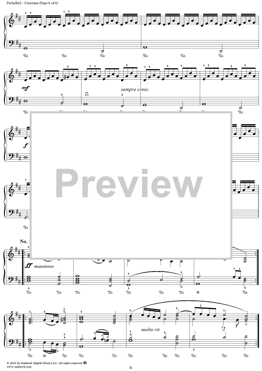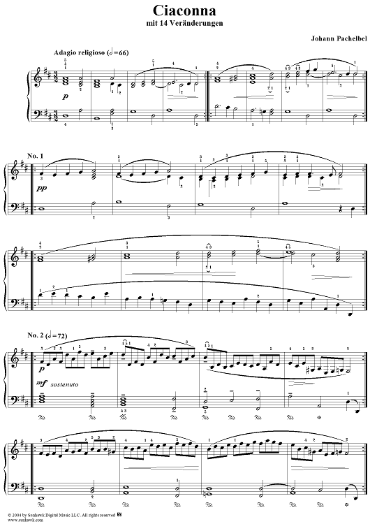 Digital Sheet Music for Ciaconna by Johann Pachelbel scored for Piano Solo; id:295787