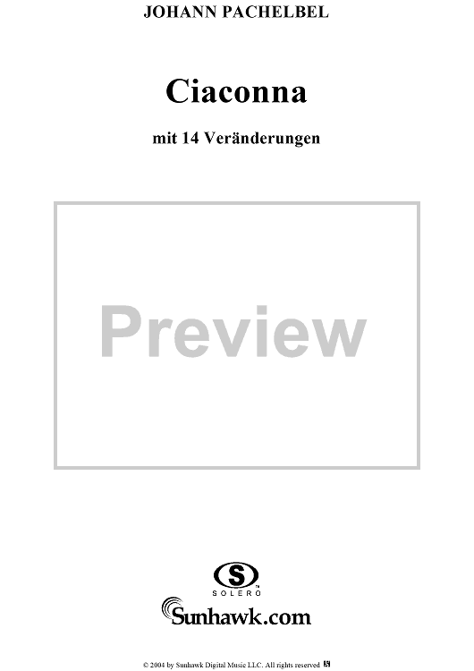"Ciaconna" Sheet Music by Johann Pachelbel