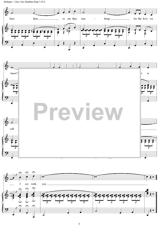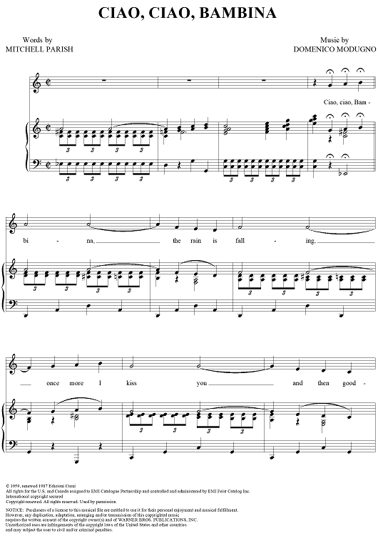 Digital Sheet Music for Ciao, Ciao, Bambina by Mitchell Parish, Domenico Modugno scored for Piano/Vocal; id:252570