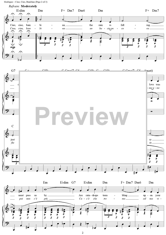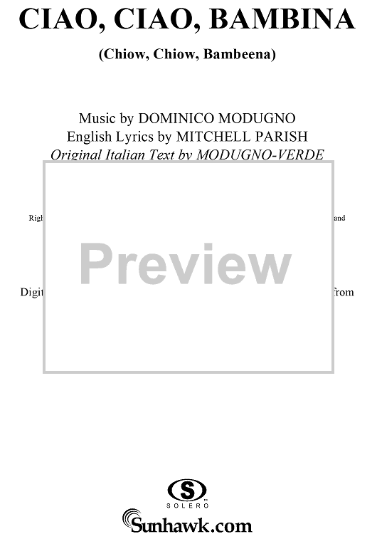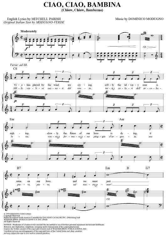 Digital Sheet Music for Ciao, Ciao, Bambina by Domenico Modugno, Modugno-Verde scored for Piano/Vocal/Chords; id:289391