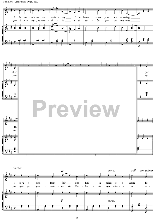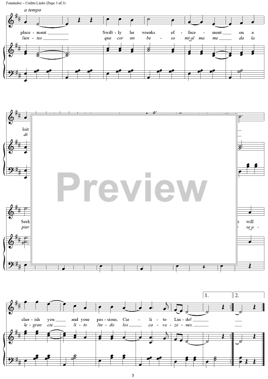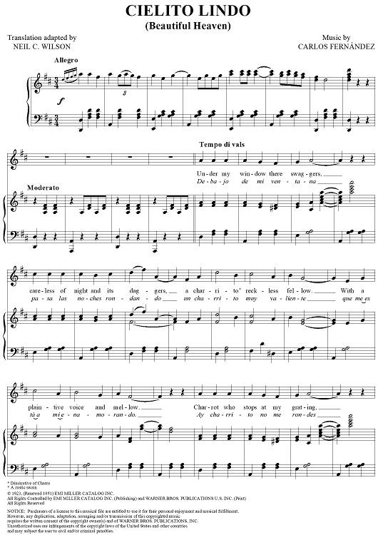 Digital Sheet Music for Cielito Lindo (Beautiful Heaven) by Carlos Fernandez scored for Piano/Vocal; id:269949