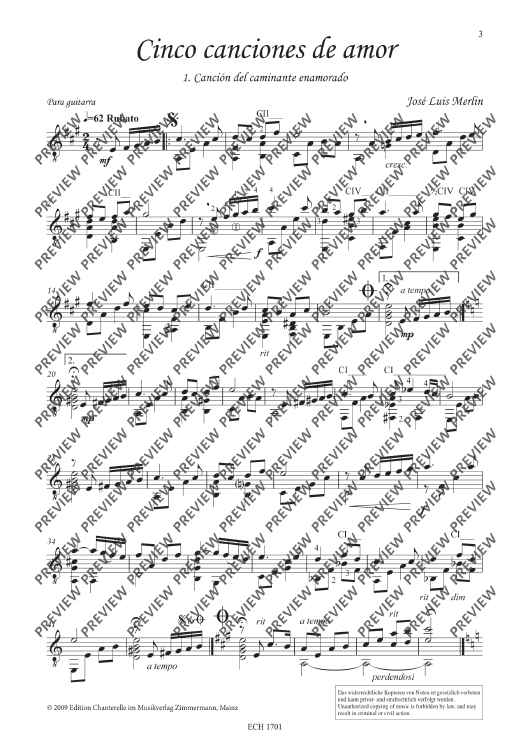 "Cinco canciones de amor" Sheet Music by José Luis Merlin