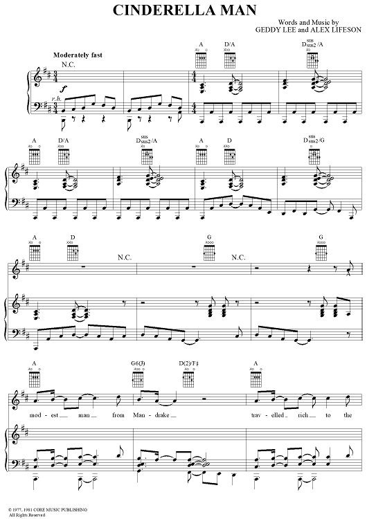 Digital Sheet Music for Cinderella Man by Rush, Geddy Lee, Alex Lifeson scored for Piano/Vocal/Chords; id:203434
