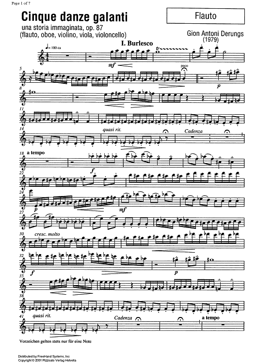 Digital Sheet Music for Cinque danze galanti (Five galant dances) Op.87 - Flute by Gion Derungs scored for Flute/Oboe/Violin/Viola/Cello; id:353610