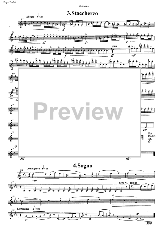 Digital Sheet Music for Cinque idee - E-flat Clarinet by , Domenico Sossai scored for 4 Clarinets; id:330642