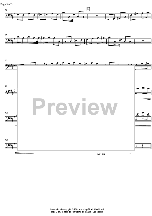"Cintec de Petrecera din Teaca - Cello" Sheet Music by Traditional