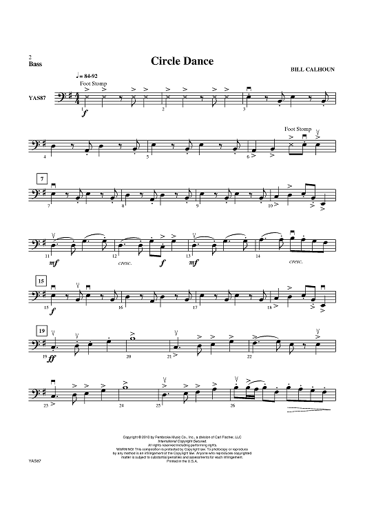 "Circle Dance - Bass" Sheet Music by Bill Calhoun
