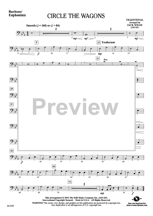 Digital Sheet Music for Circle The Wagons - Baritone/Euphonium by Traditional, Jack Wilds scored for Concert Band; id:439157