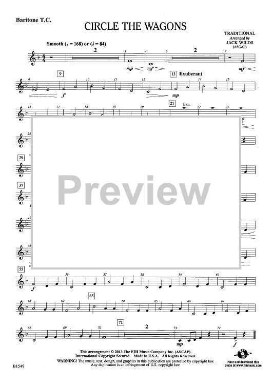 Digital Sheet Music for Circle The Wagons - Baritone TC by Traditional, Jack Wilds scored for Concert Band; id:439158