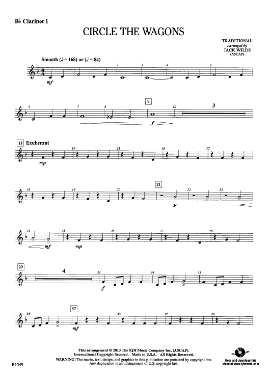 Digital Sheet Music for Circle The Wagons - Bb Clarinet 1 by Traditional, Jack Wilds scored for Concert Band; id:439147