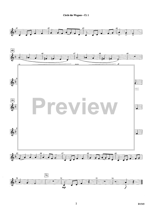 "Circle The Wagons - Bb Clarinet 1" Sheet Music by Traditional