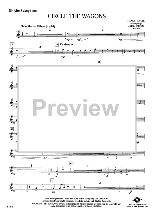 Digital Sheet Music for Circle The Wagons - Eb Alto Sax by Traditional, Jack Wilds scored for Concert Band; id:439150