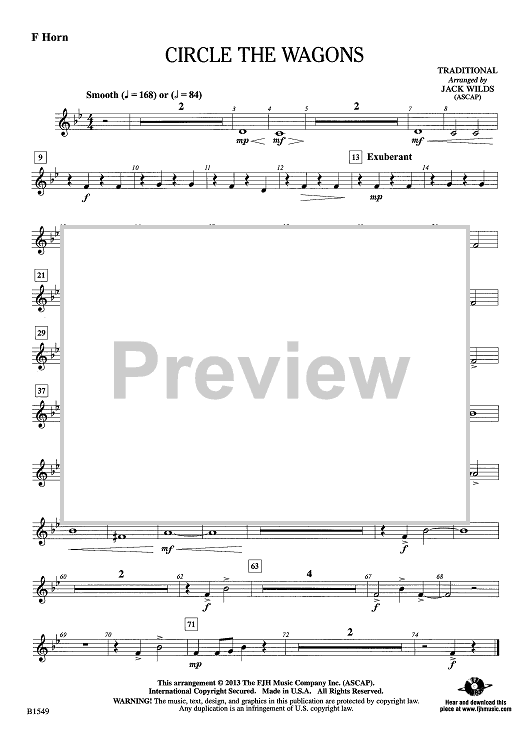 Digital Sheet Music for Circle The Wagons - F Horn by Traditional, Jack Wilds scored for Concert Band; id:439155