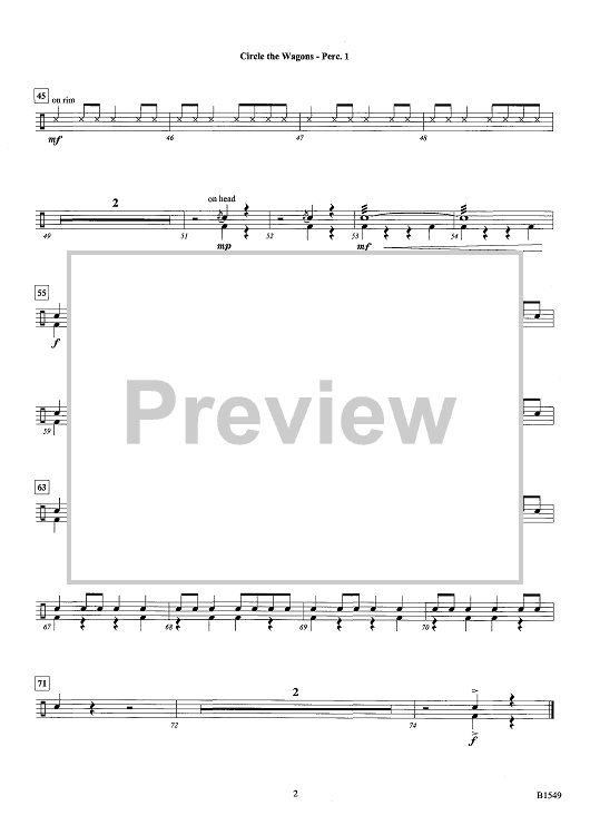Digital Sheet Music for Circle The Wagons - Percussion 1 by Traditional, Jack Wilds scored for Concert Band; id:439162