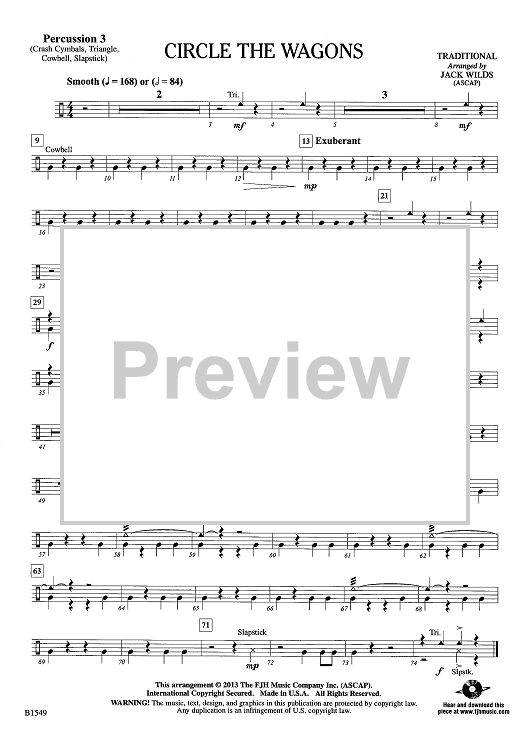 Digital Sheet Music for Circle The Wagons - Percussion 3 by Traditional, Jack Wilds scored for Concert Band; id:439164