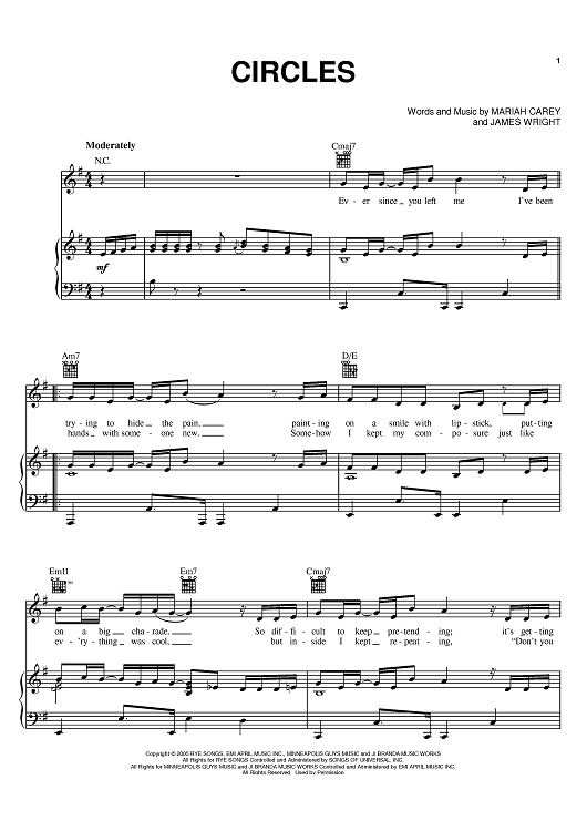 Digital Sheet Music for Circles by Mariah Carey, James Wright scored for Piano/Vocal/Chords; id:386414